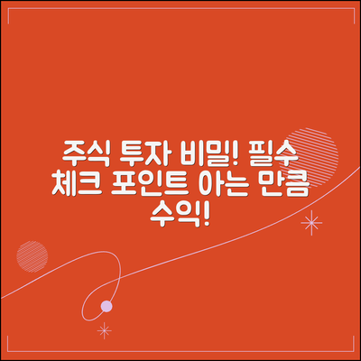 주식 투자에 성공하기 위해서는 다음의 핵심 요소를 주목해야 합니다: